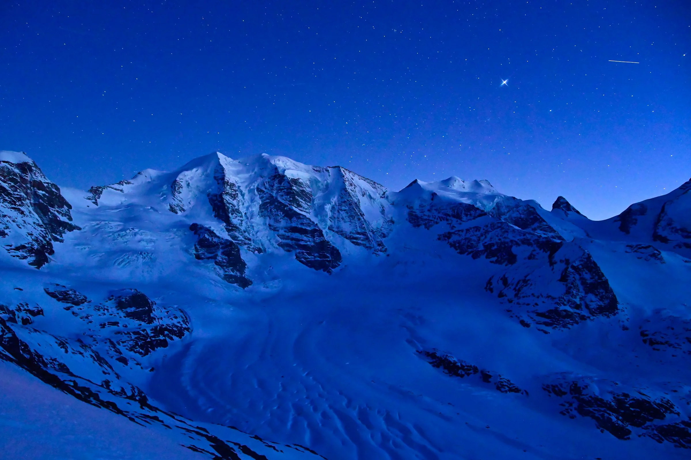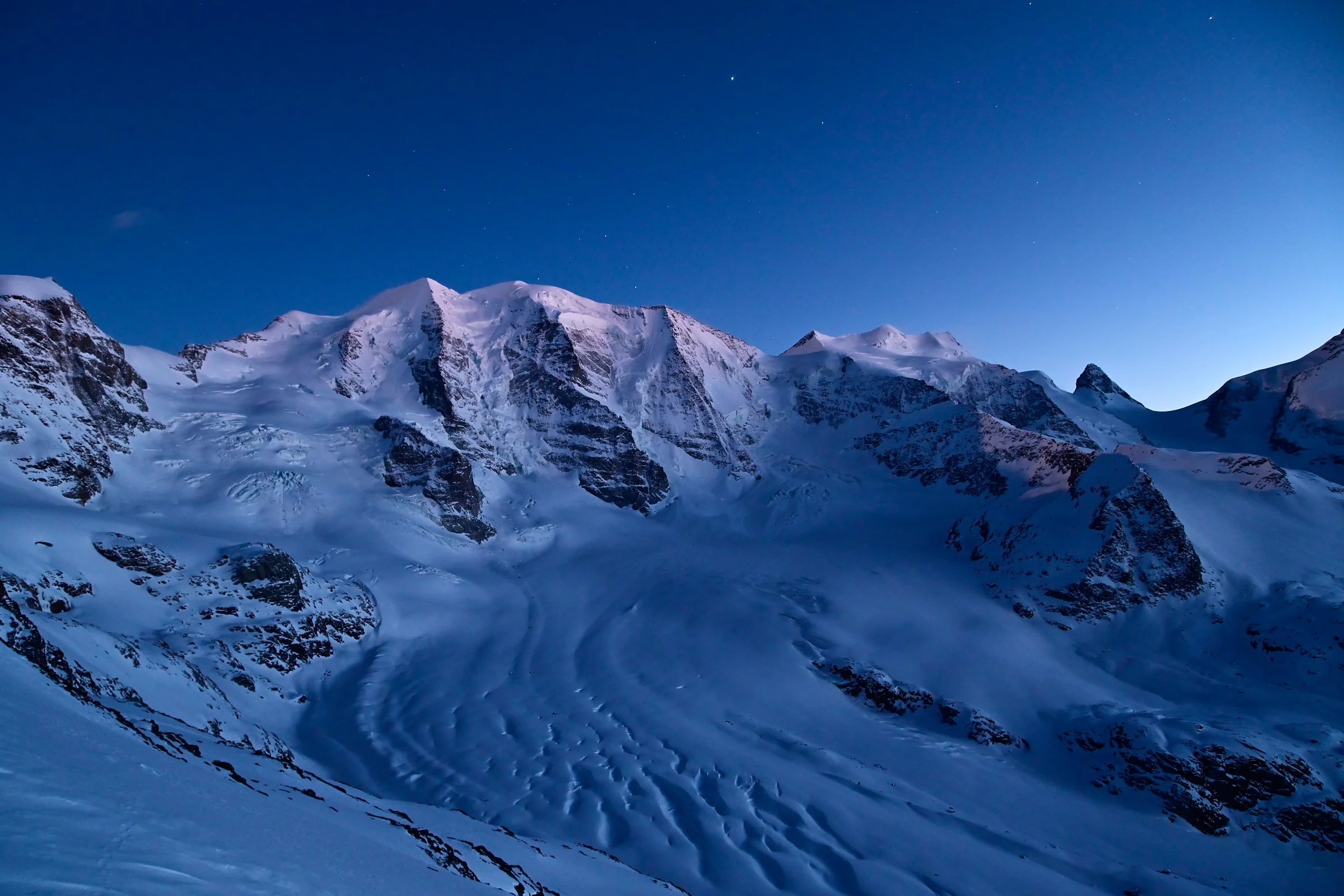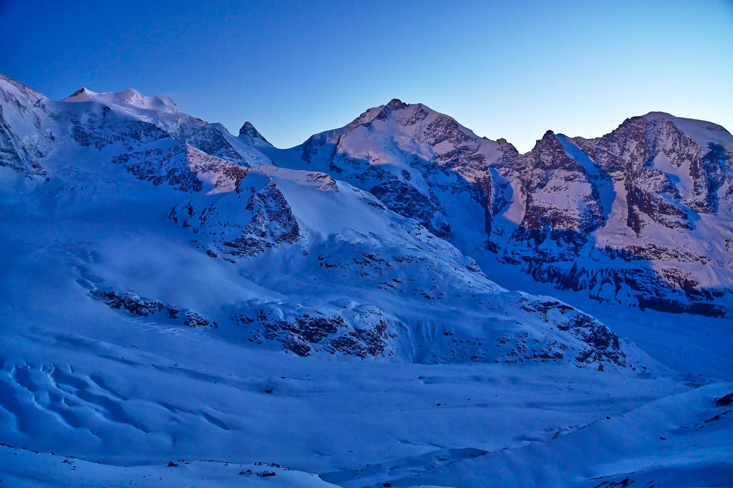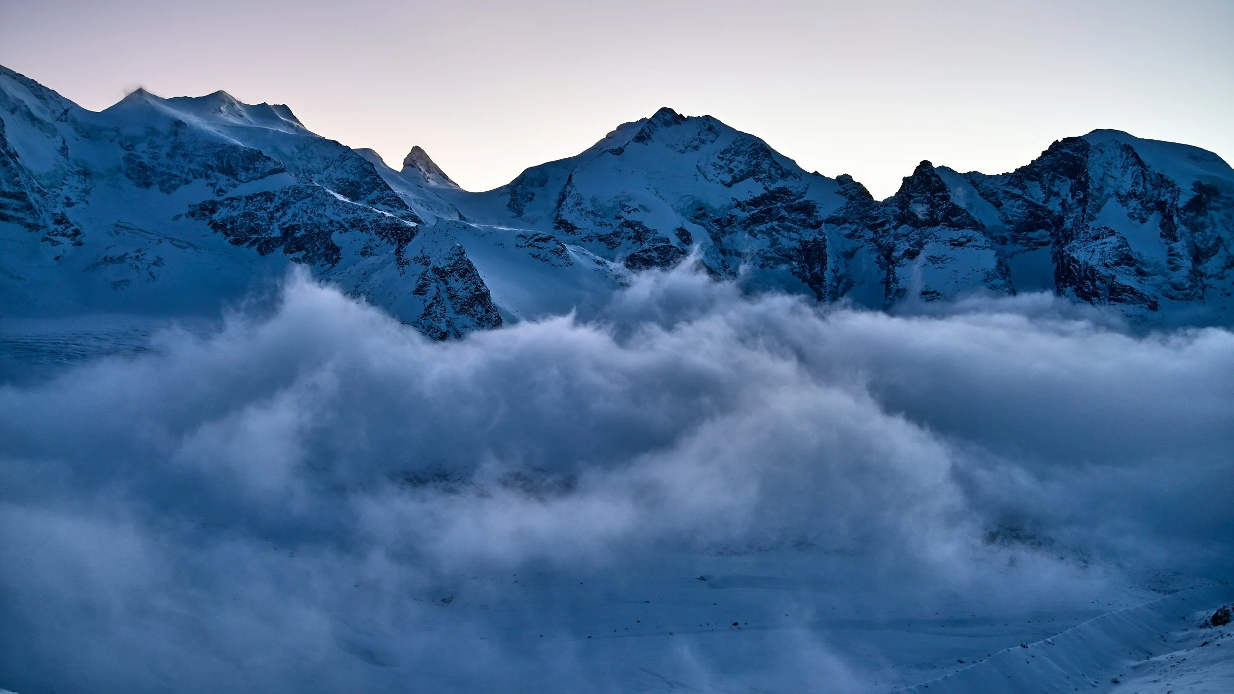 Der Sommer ist auf dem Weg. Bevor er ankommt, zeigen wir hier die schönsten Bilder, die unsere Kameras in diesem Winter eingefangen haben: stille Morgen über dem Pers bis zum Piz Bernina, Wolken über dem Piz Palü und das eigentümlich blaue Licht früh am Morgen, wenn das Tal noch im Schatten liegt und die Grate schon brennen.