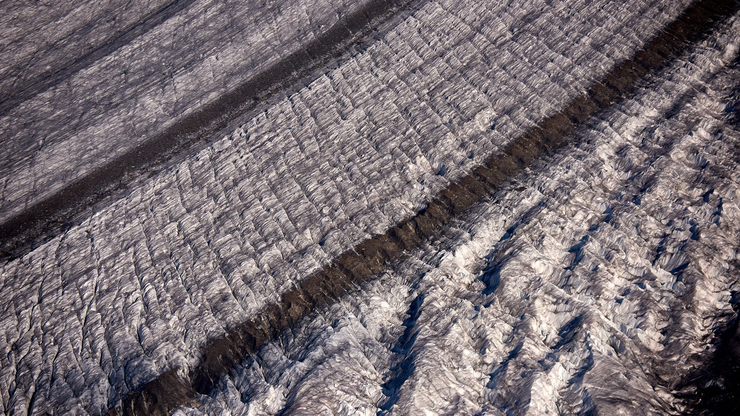 Ablagerungen auf dem grossen Aletsch Gletscher. Photo © Jürg Kaufmann